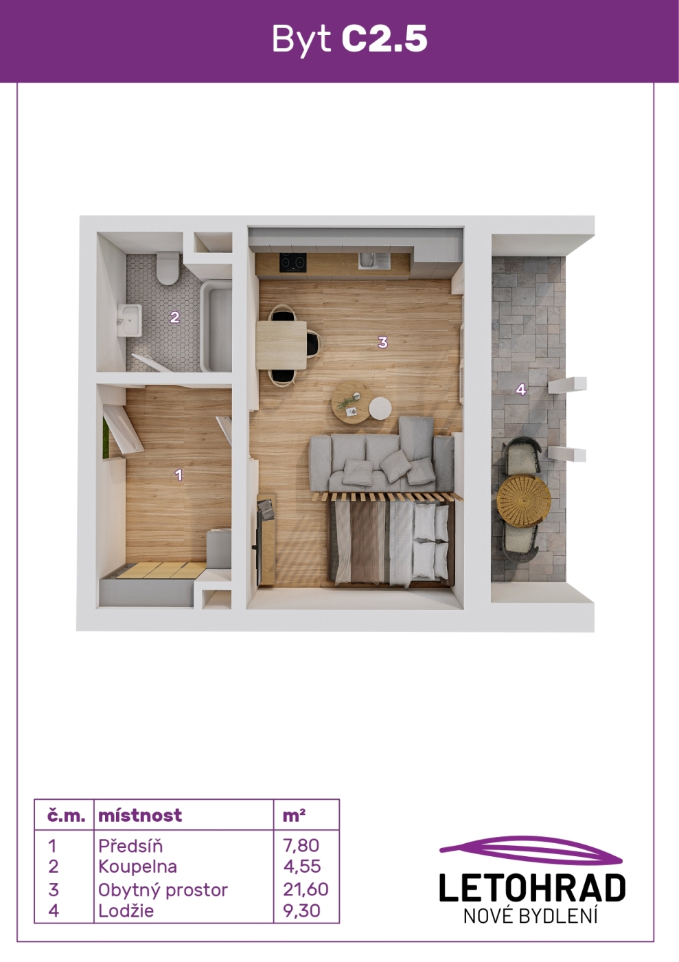 - Součástí bytu je lodžie o ploše 9,3 m² a sklep o ploše 3,1 m²